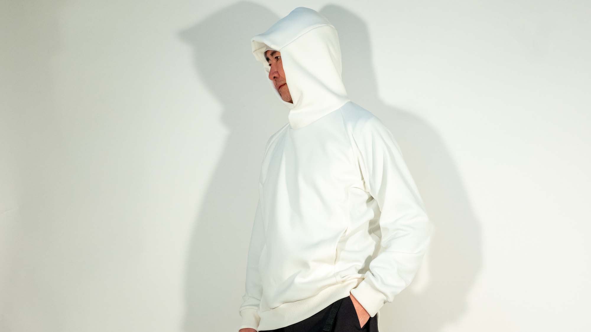 LT-LA03 サイクルパーカー 暑くなったり、急に寒くなったりと体温調節が難しいこの季節。厚すぎず薄すぎない程よい肉感のサイクルパーカー。素材の持つぷっくりとした質感を生かし、美しいミニマルなバックポケット付きのパーカーを作った。新鮮なホワイトと持っていて安心なブラック。大変お待たせ致しました!megu